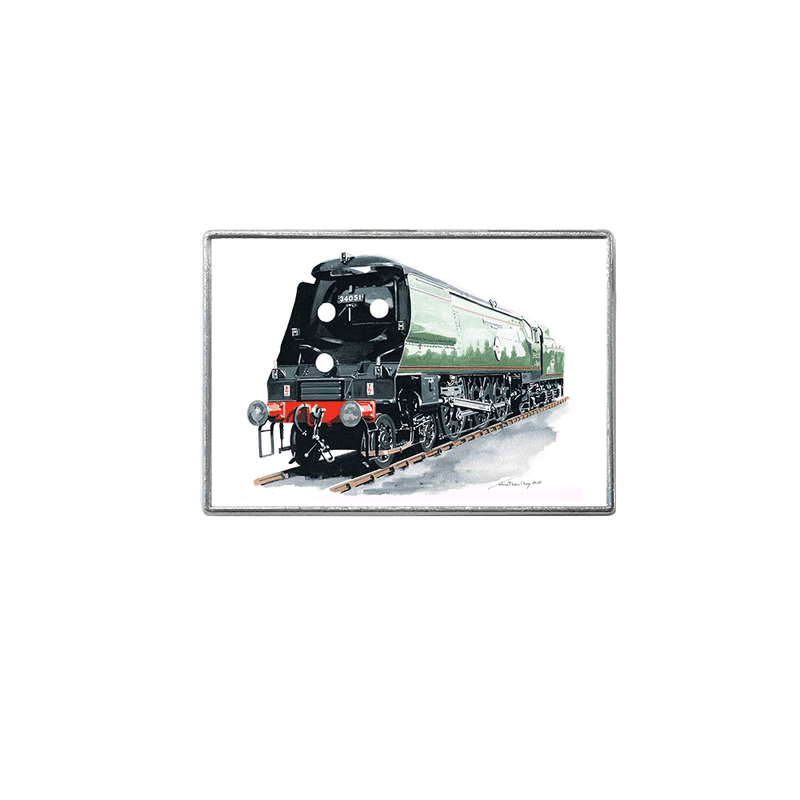 This fine art print locomotive fridge magnet incorporates the highly detailed work of Jonathan Clay. Made to order and produced in our Birmingham factory with a hand enamelled dome, this is the perfect practical gift for any rail enthusiast. This hand finished silver magnet will remind you of your favourite locomotive and will also help hold important papers onto your fridge.